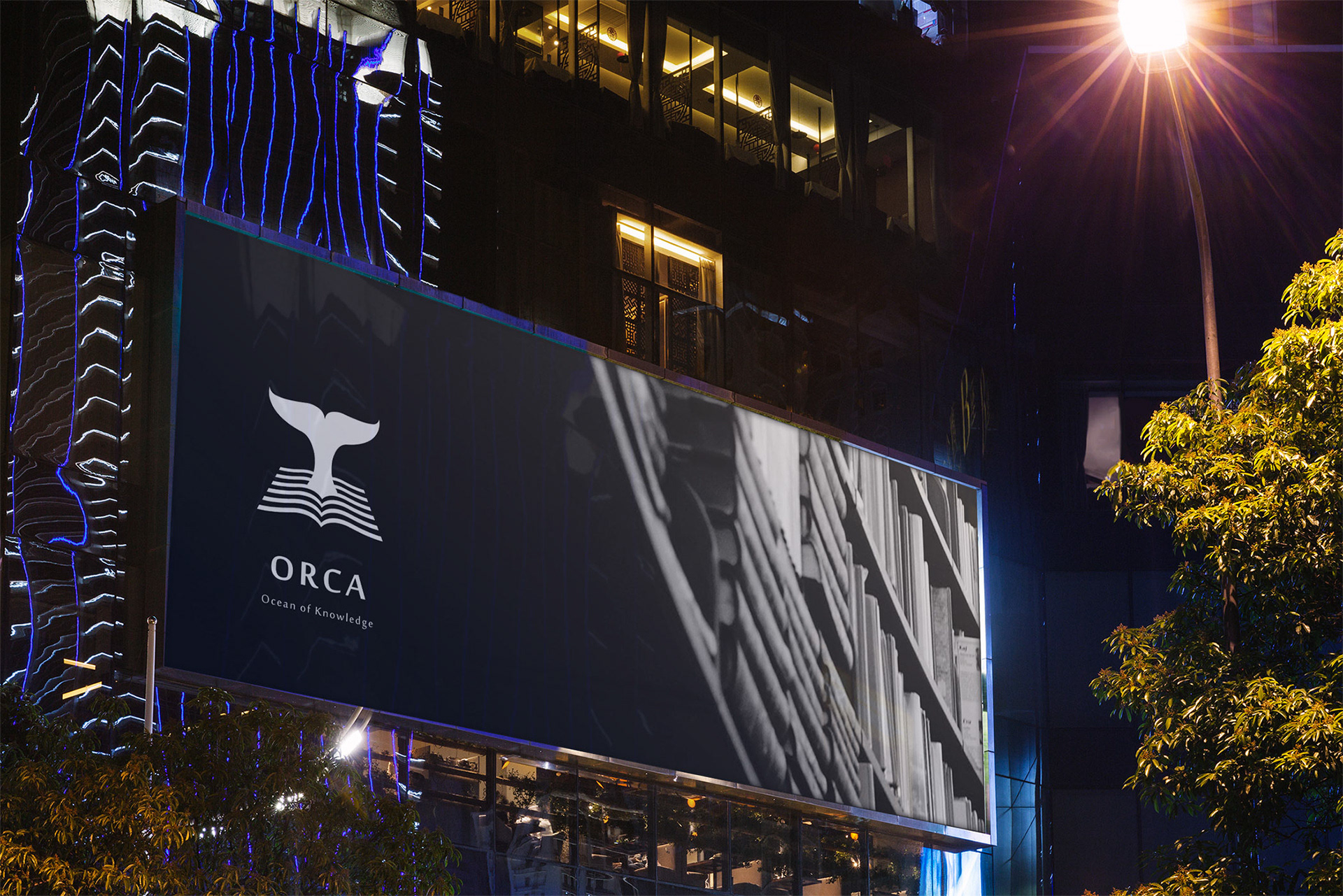 Orca is considered one of the most intelligent animals. The Orca is equipped with sonar that allow it to live in bands with very high communication capabilities.The extraordinary intelligence, the high media, the migration between new spaces and the ability to dive deep, connected the Orca to a publishing house.